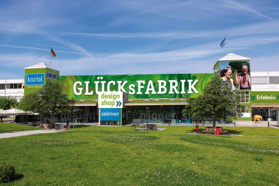 Schon 2009 erweiterte Koziol seine Liegenschaft in moderner Glasbauweise. Im neuen Teil des Anwesens, der sich in der Werner-von-Siemens-Straße an die Fabrikationshallen anschließt, präsentiert sich das Unternehmen hautnah und permanent der Öffentlichkeit. Neben einem weitläufigen Verkaufszentrum ist in der sogenannten "Glücksfabrik" auch Zeit und Platz für Besuchergruppen, selbst Kindergeburtstage werden dort mitunter gefeiert. Zu den Attraktionen dieses Standortes gehört auch ein Museum, in dem Erzeugnisse und Maschinen vergangener Zeiten und die Geschichte des Unternehmens gezeigt werden. Auch dort stellt sich Koziol immer wieder der Problematik des Kunststoffes, der Segen und Fluch gleichermaßen sein kann. Für Katrin Bode bleibt es ein Wandeln auf einem schmalen Grad über das "Material der Moderne" zu sprechen und immer wieder zu erklären, dass es klug beherrscht der Welt dienen kann und sie nicht zerstören muss.